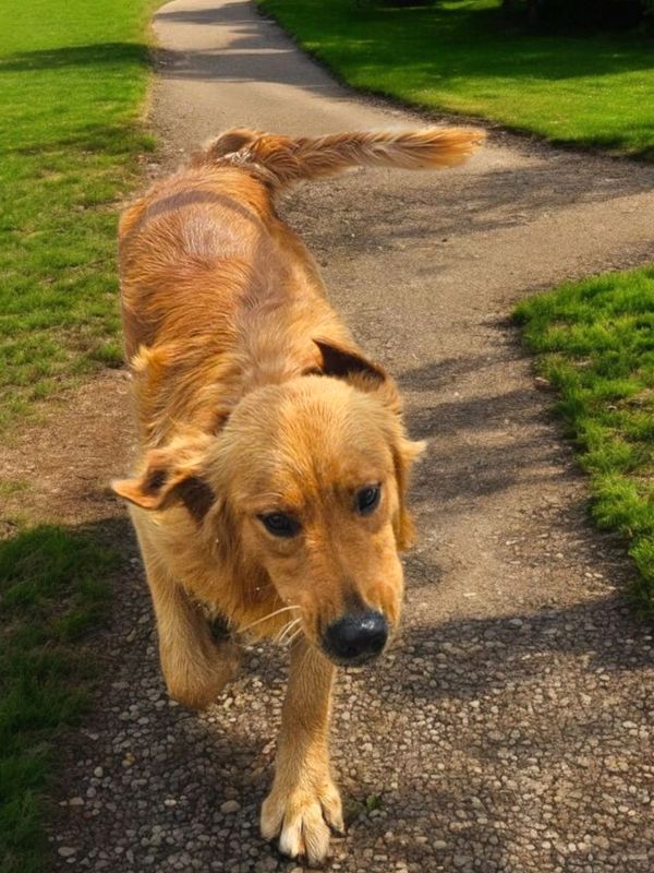 Our newest addition to the Golden breeding lines. He is handsome and has more of a straight coat. He is very smart and outgoing. AKC Registered.
